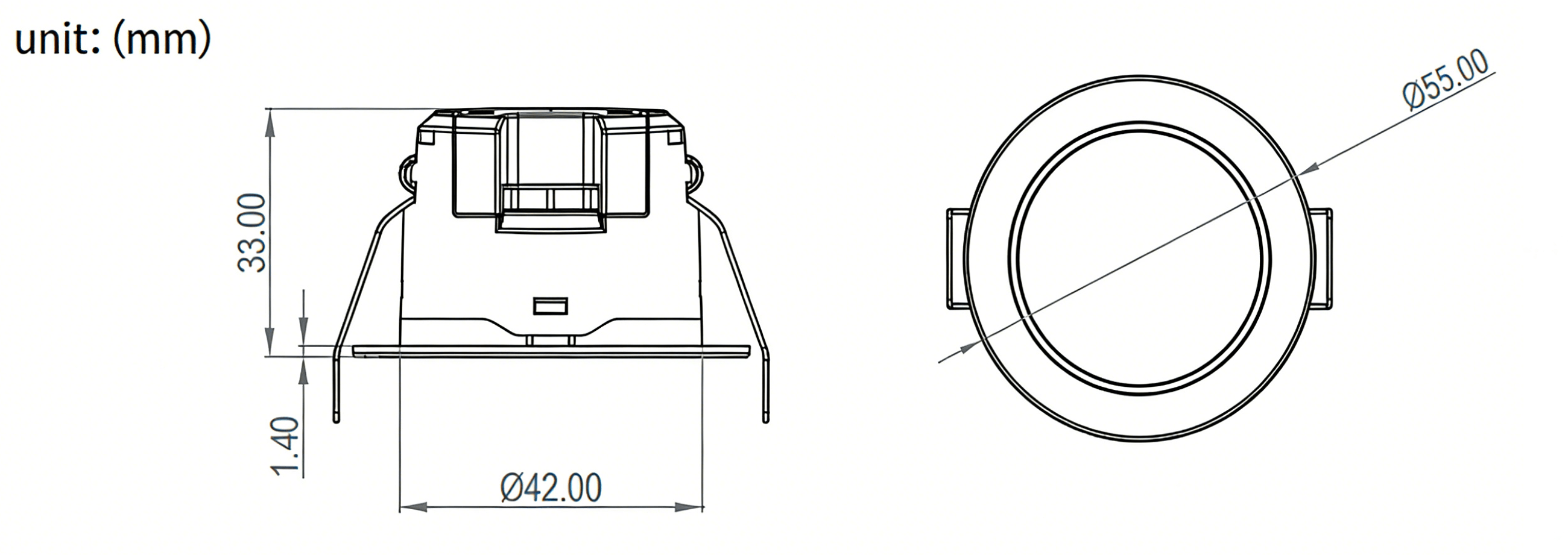 Der 24-GHz-Präsenzsensor erfasst Bewegungen, Mikrobewegungen und Anwesenheit zuverlässig in einem Erfassungsbereich von bis zu 5,5 m. Mit einem Erfassungswinkel von 80° eignet er sich für die präzise Raumüberwachung in Büro- und Gebäudebereichen. Auch minimale Bewegungen wie Tippen oder leichte Körperbewegungen werden sicher erkannt.